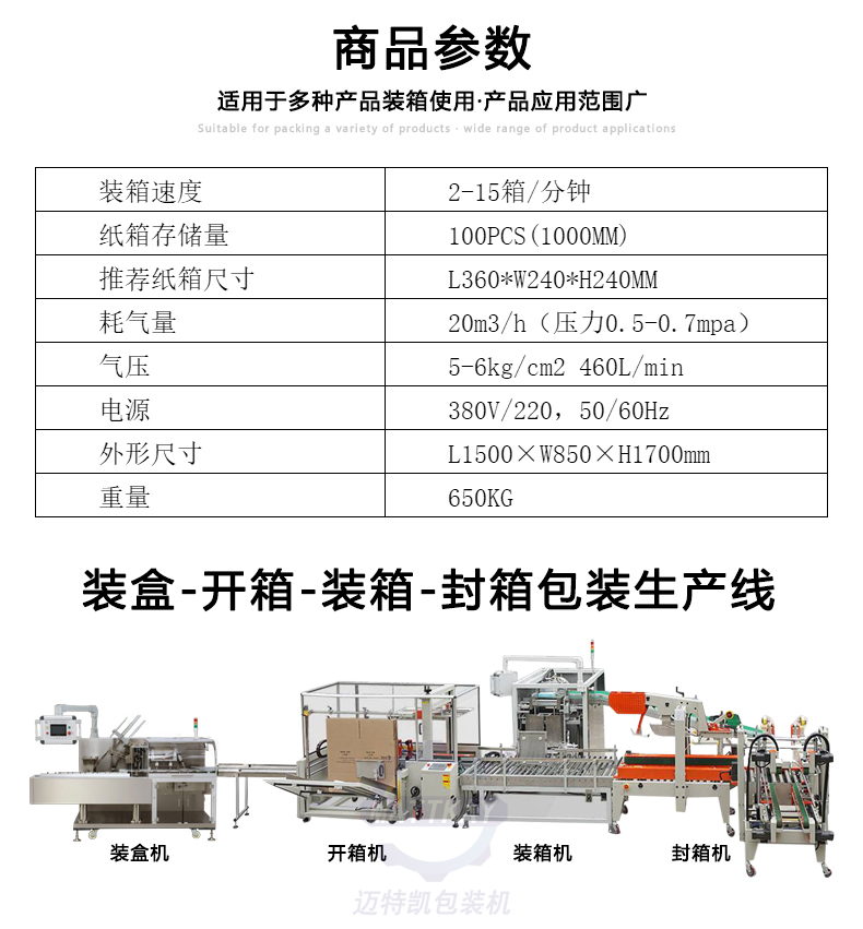 · 適用范圍廣,可滿足多種規(guī)格產(chǎn)品裝箱;
